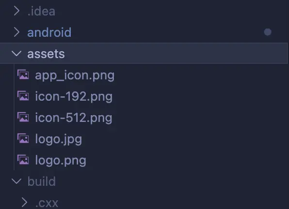 Important: If the assets or icon folders don’t exist in your project, create them manually: