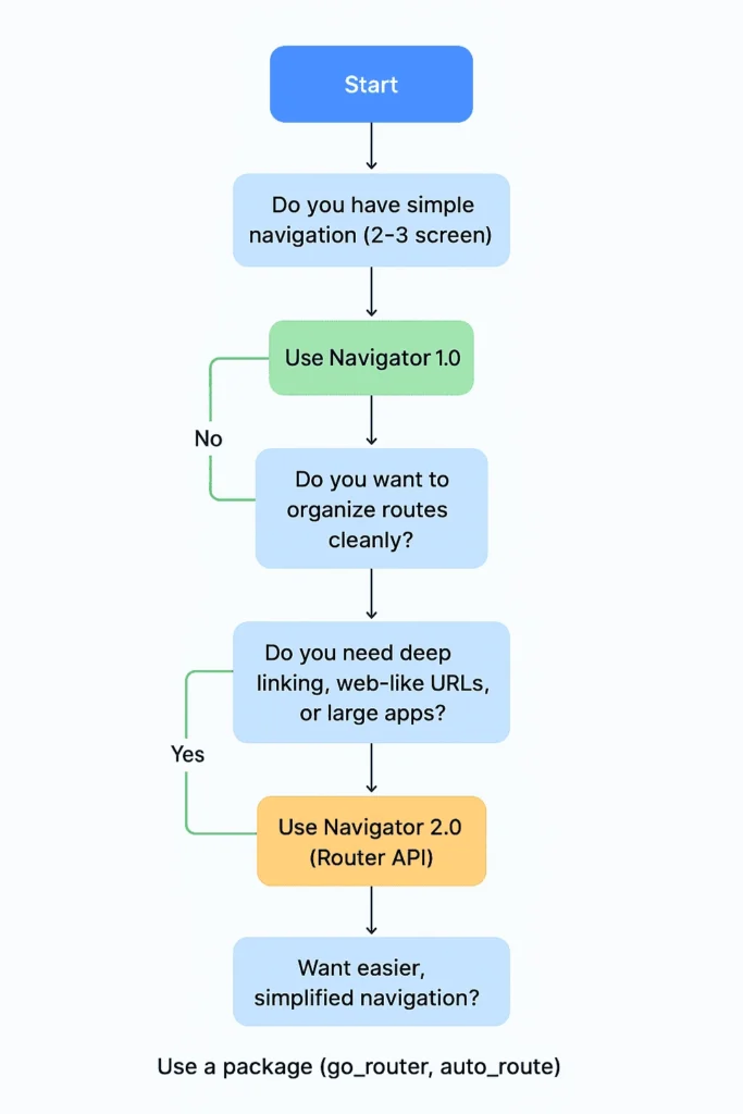 Starting a simple app? Use Navigator 1.0 (basic push/pop). Perfect for learning and small projects.