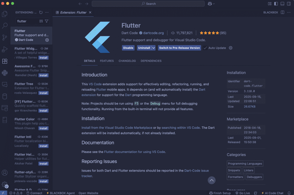 - Dart & Flutter Extensions for VS Code