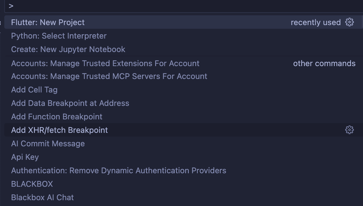 Alternative Method: You can also verify by opening the Command Palette and typing “Flutter” to see if Flutter commands appear.